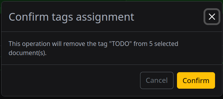 - Bulk updates are quite easy too, and can span multiple pages, so if you find 200+ documents that you can tell it scanned and tagged mostly correctly, you can do a bulk edit to all of them adjusting certain things, and removing the